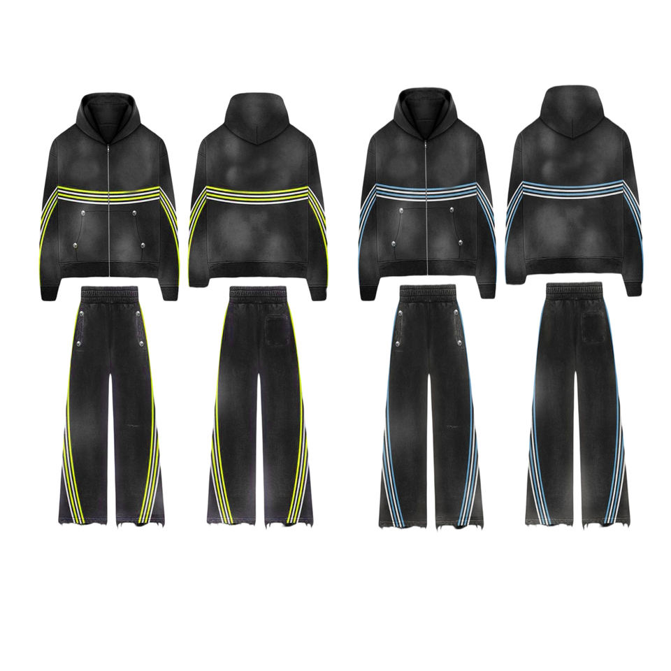 เสื้อฮู้ดซิปแบบวินเทจผ้าฝ้ายฟลีซ 100% ชุดวอร์มขาบานลายข้างแบบย้อมสีเอซิด ไซส์พลัส ระบายอากาศได้ดี พิมพ์ลาย