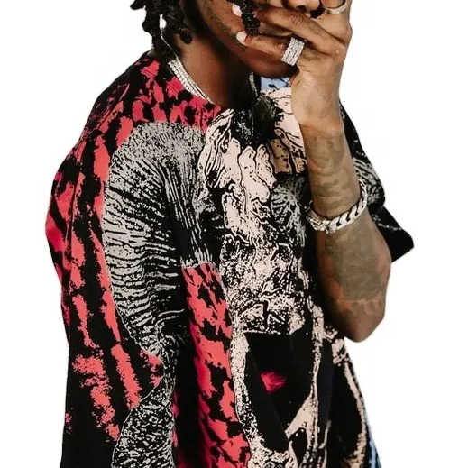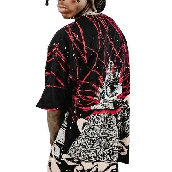 เสื้อยืดลายล้างกรดสไตล์วินเทจสำหรับผู้ชายเสื้อยืดลายสตรีทไซส์ใหญ่พิเศษออกแบบได้ตามต้องการ