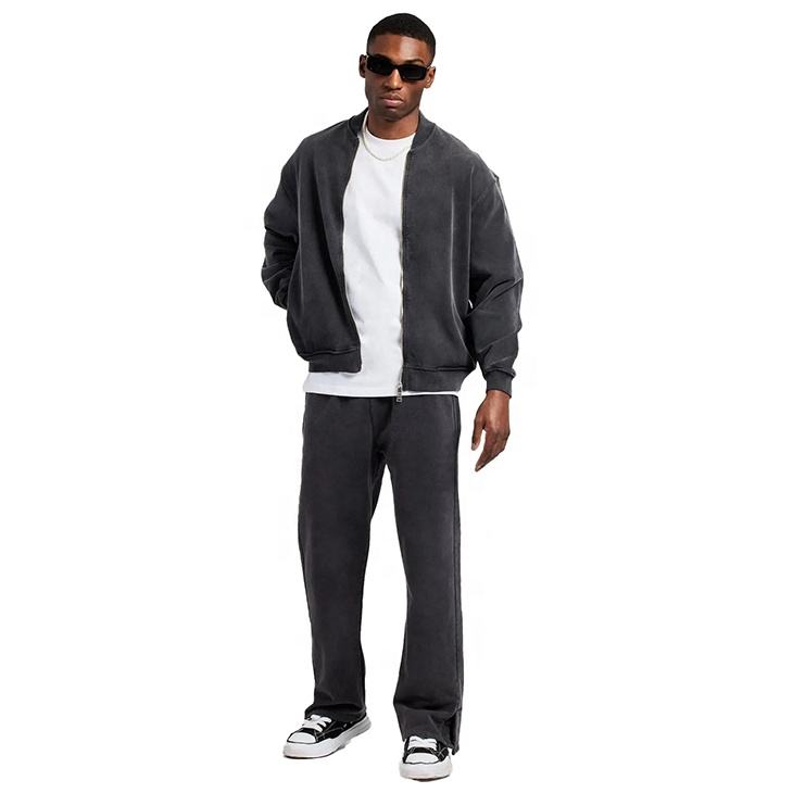ชุดเสื้อแจ็กเก็ตและกางเกงวอร์มผ้าเฮฟวีเวตมีซิปเต็มตัวสไตล์วินเทจชุดวอร์มผ้าฝ้าย100% ฤดูหนาวแบบกำหนดเองมีคุณสมบัติระบายอากาศ