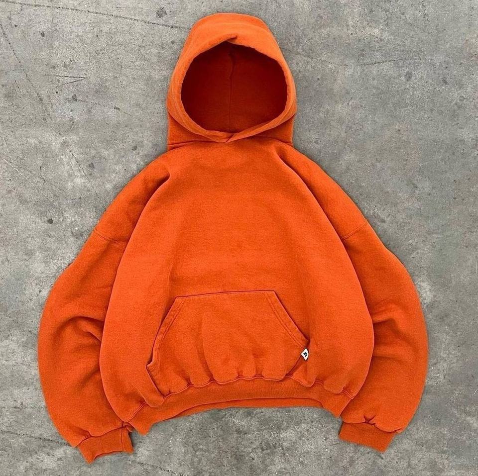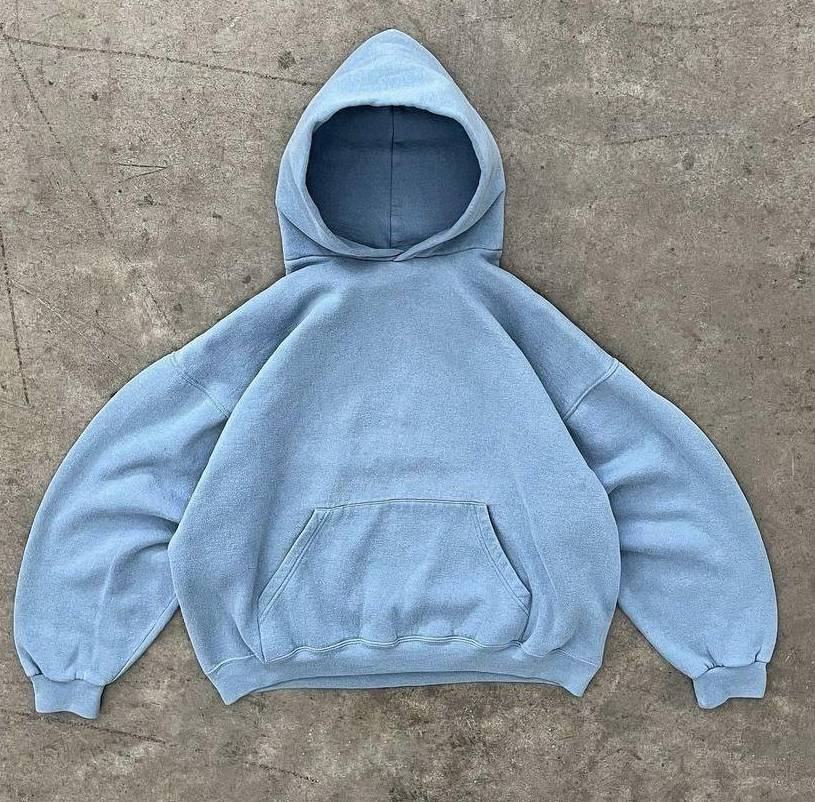 เสื้อฮู้ดหินฟอกสีกรดแบบวินเทจโอเวอร์ไซซ์เสื้อสเวตเตอร์ตัวเก่าแบบปักลายบ็อกซี่ซีดจางเหมาะกับฤดูใบไม้ผลิดิจิตอล