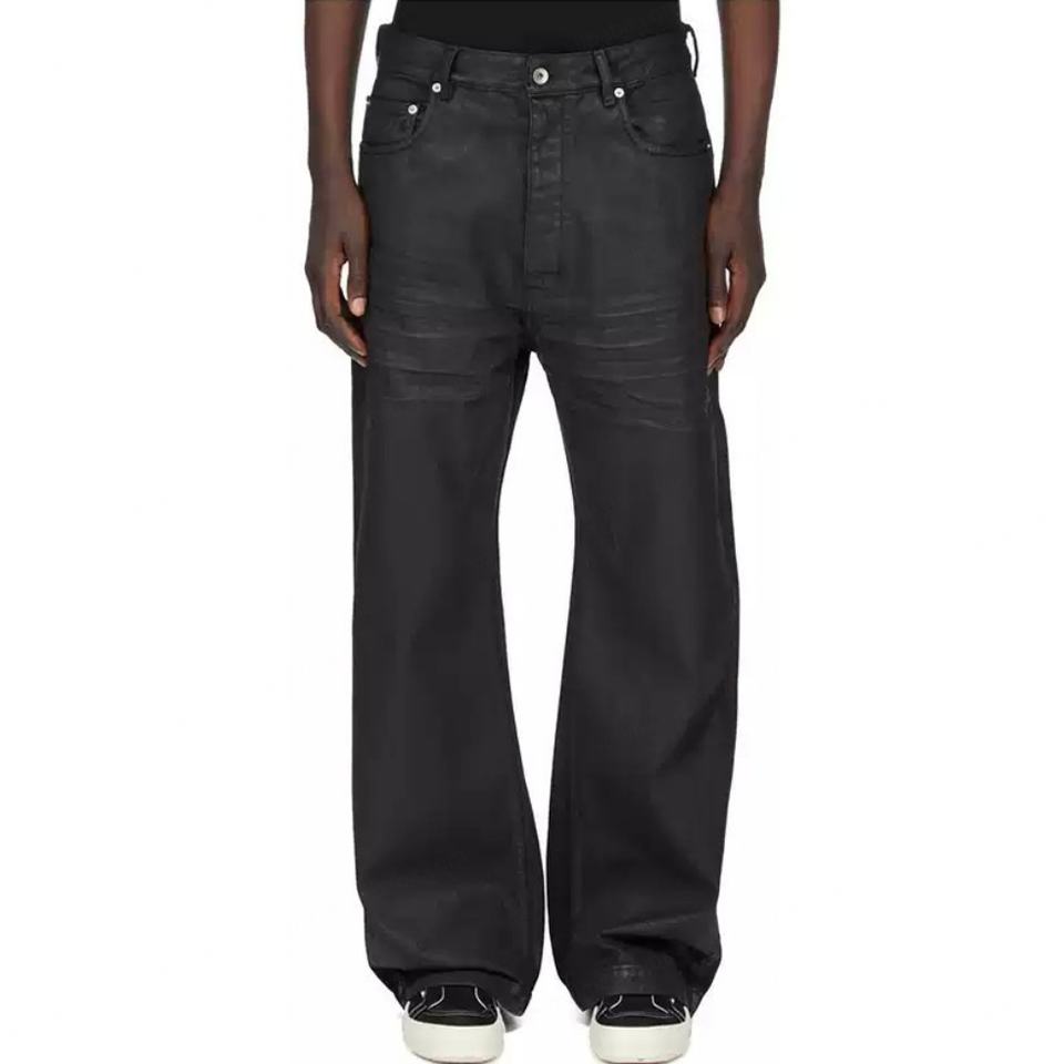 กางเกงยีนส์เดนิมสีดำเทาฟอกสไตล์วินเทจสำหรับผู้ชาย คุณภาพสูง ผ้าฝ้ายทรงหลวม กางเกงขายาวผู้ชาย