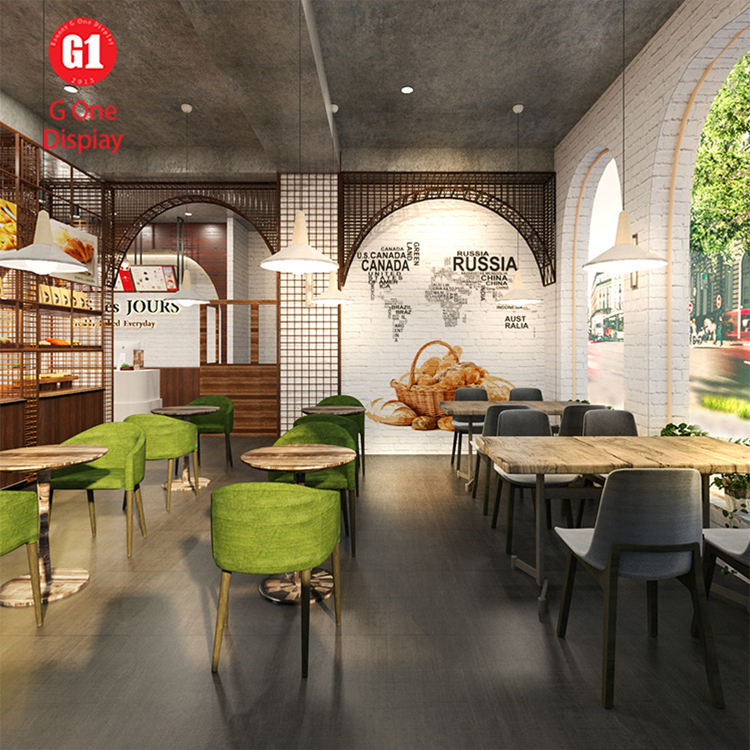 เคาน์เตอร์ขนมปังวินเทจสั่งทำ ชั้นวางโชว์เบเกอรี่ขายส่ง ตกแต่งร้านเบเกอรี่เค้กตามสั่ง ตู้โชว์เบเกอรี่