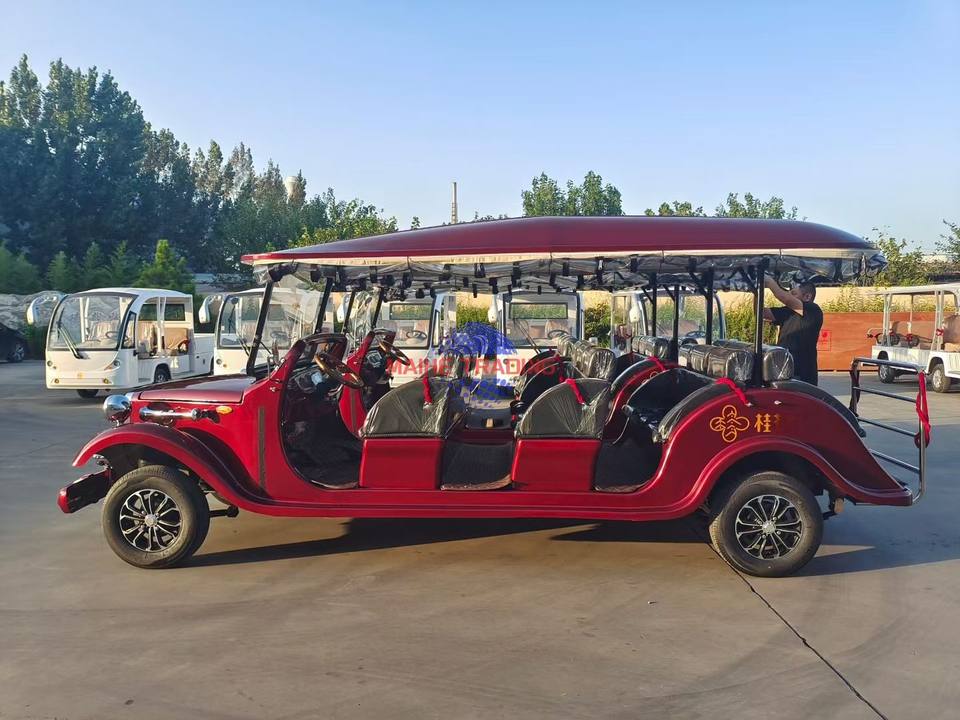 รถสามล้อไฟฟ้าสไตล์วินเทจคลาสสิกแบบสั่งทำพิเศษ สำหรับโรงแรม สถานที่ท่องเที่ยว อสังหาริมทรัพย์ ทัวร์รับรองแขก รถรับแขกบ้านพัก 11 ที่นั่ง สำหรับทัวร์ชมวิว