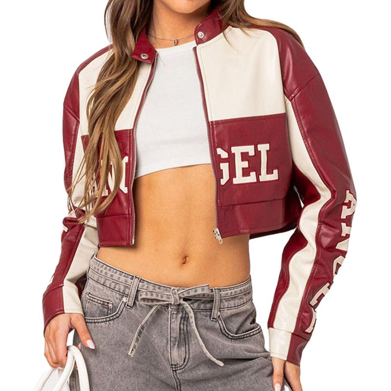แจ็คเก็ตมอเตอร์ไซค์หนังแท้สไตล์วินเทจคลาสสิก ปักโลโก้แบบ OEM แจ็คเก็ตครอปสำหรับผู้หญิง