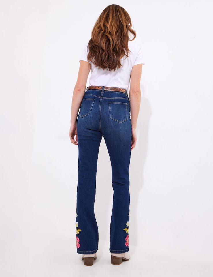 กางเกงยีนส์ทรงตรงขากว้างสีน้ำเงินเข้ม ผ้าฝ้ายพิมพ์ลายปักสไตล์วินเทจ เอวสูง ใส่สบาย เป็นมิตรกับสิ่งแวดล้อม เหมาะสำหรับฤดูร้อน
