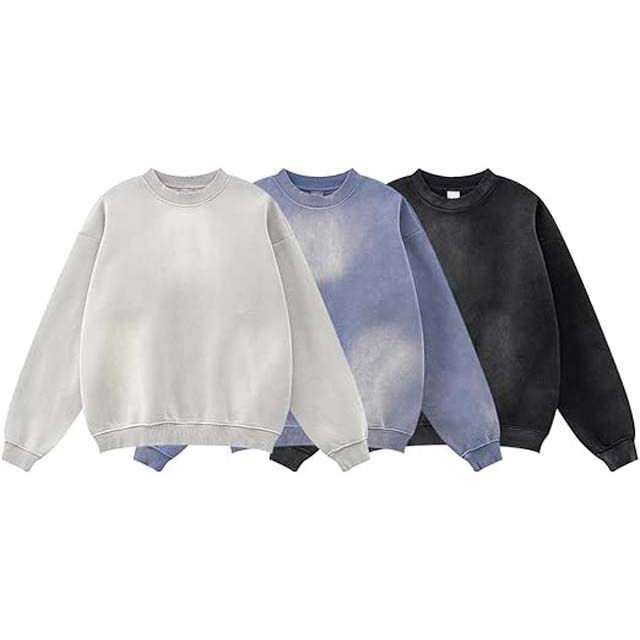 เสื้อสเวตเชิ้ตคอกลมวินเทจแบบกำหนดเอง เสื้อสเวตเชิ้ตคอกลมเปล่าสำหรับผู้ชาย เสื้อสเวตเชิ้ตแบบฟอกสี ราคาขายส่ง ระบายอากาศได้ดี รับผลิตแบบ OEM