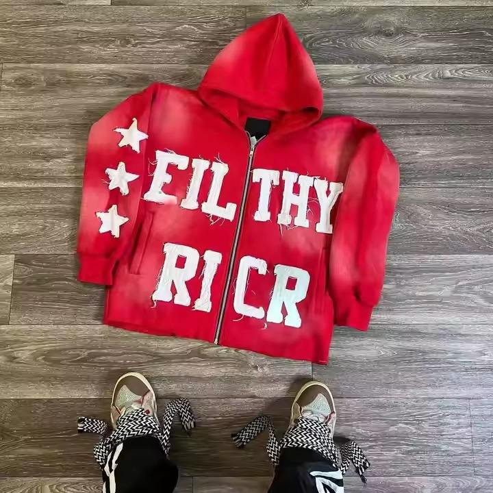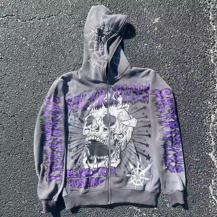 เสื้อฮู้ดสำหรับผู้ชายผ้าคอตตอน100% รุ่นวินเทจแบบมีซิปรูดขึ้นแบบเก็บความร้อนแบบกำหนดเอง