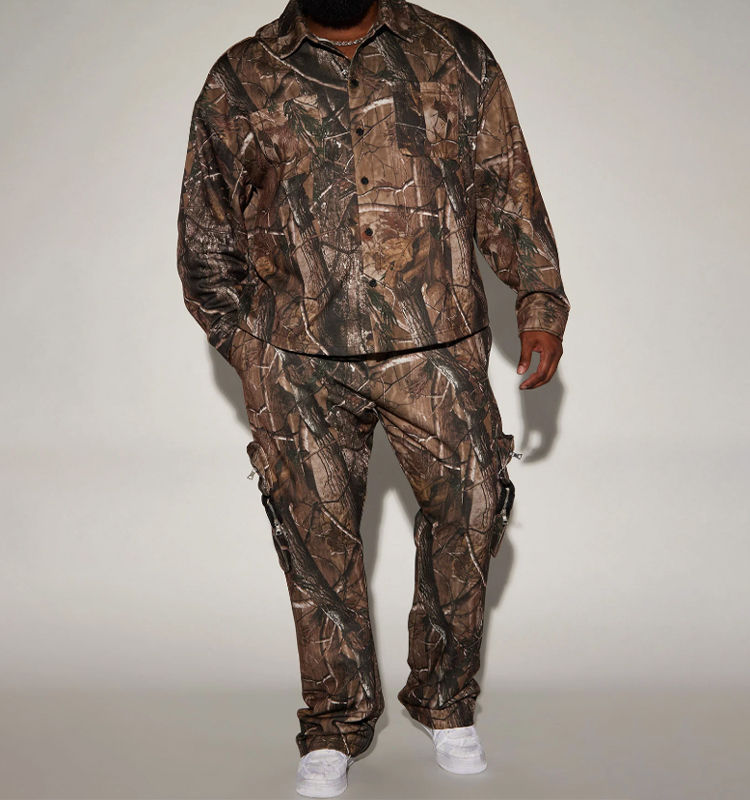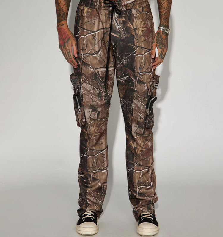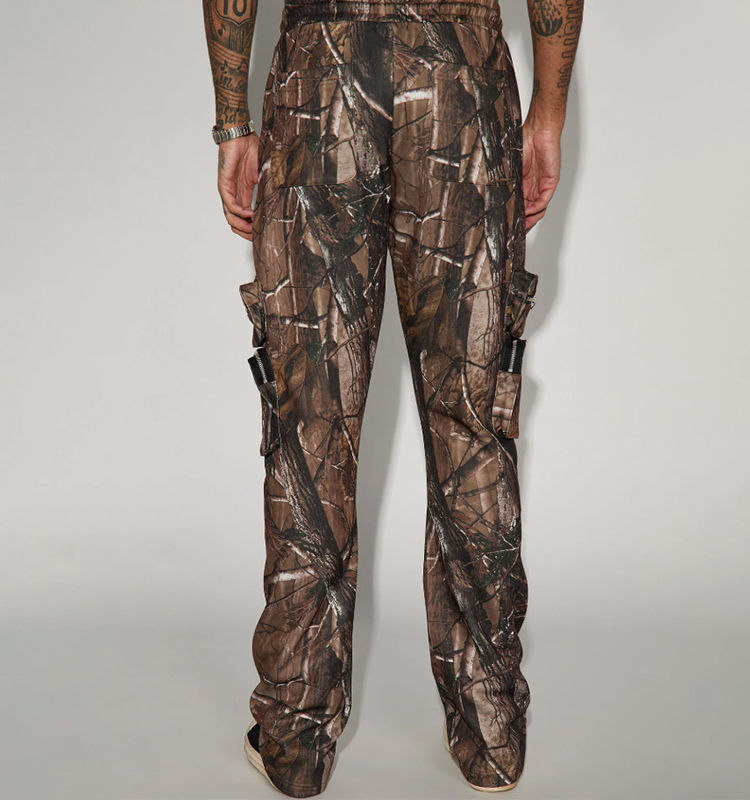 กางเกงวินเทจพิมพ์ลายดิจิตอลทรงตรงสไตล์ฮิปฮอปสำหรับผู้ชาย มีกระเป๋าแบบคาร์โก้ ลายพรางต้นไม้จริง ทรงขาเดฟ