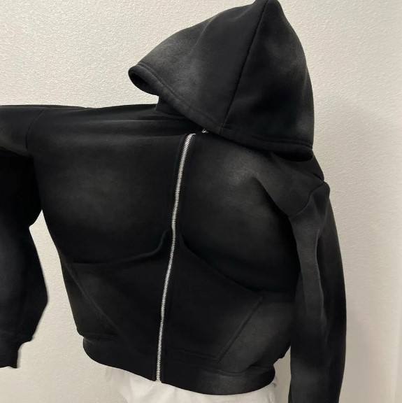 เสื้อมีฮู้ดแบบมีซิปสำหรับผู้ชายเสื้อครอปประดับพลอยเทียม100% สไตล์วินเทจแบบกำหนดเองสำหรับฤดูหนาว