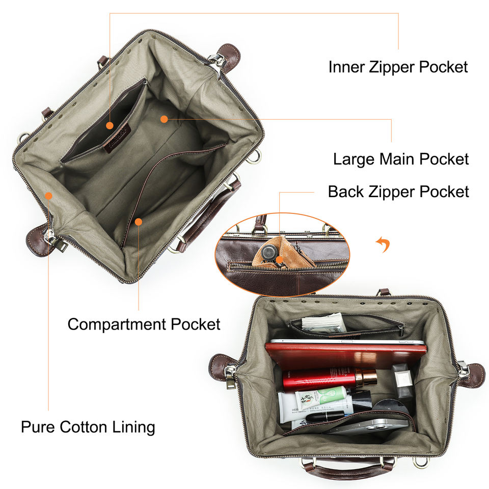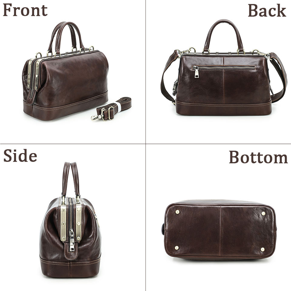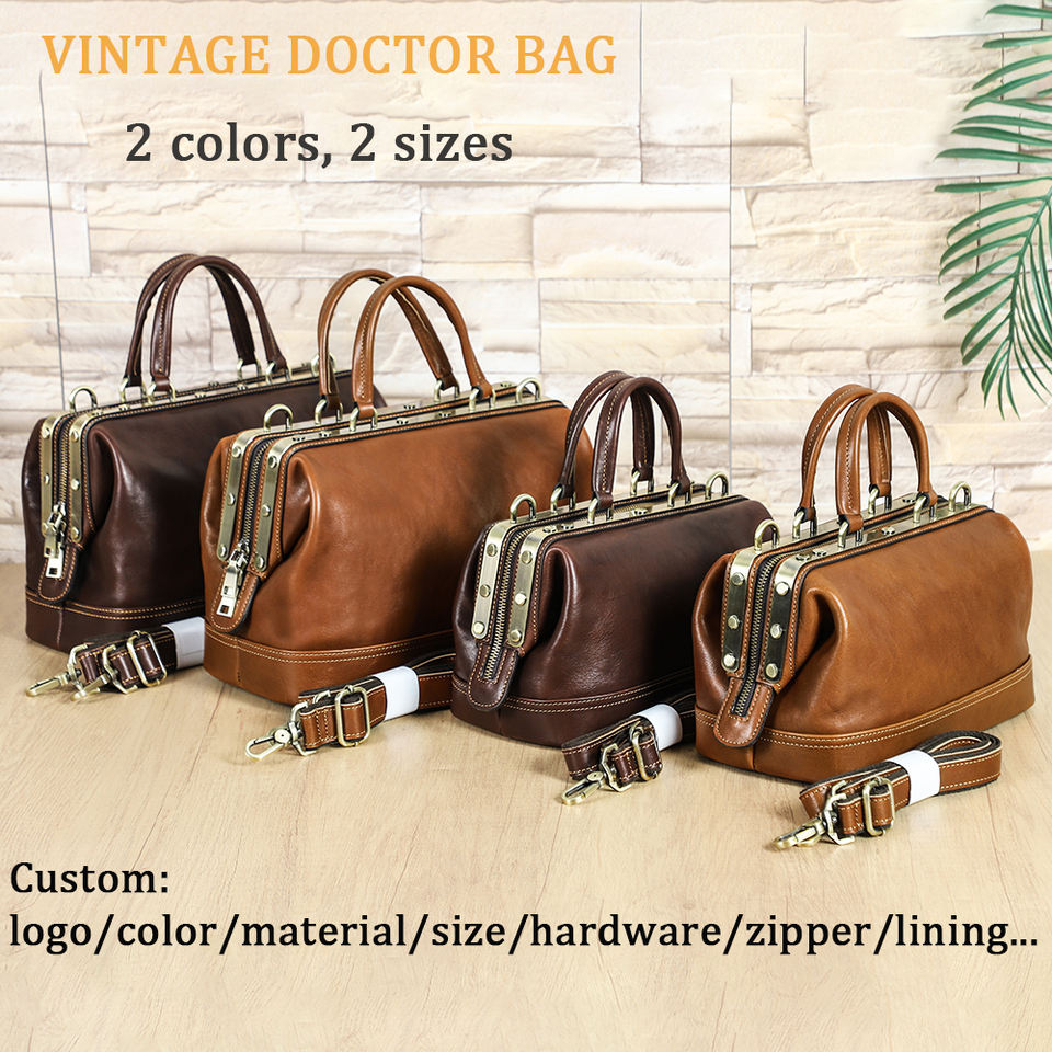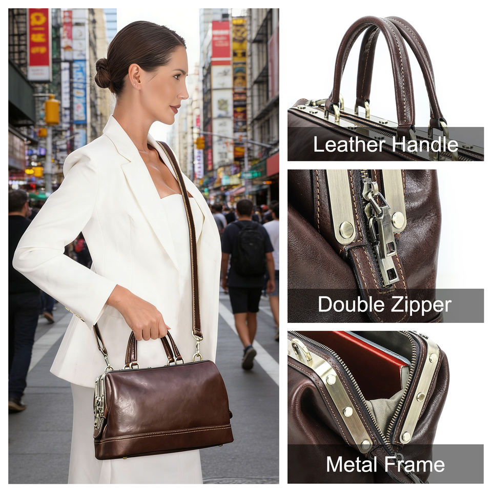 กระเป๋าหมอสไตล์วินเทจสำหรับผู้หญิง กระเป๋าถือขนาดใหญ่พร้อมโครงโลหะ หนังแท้คุณภาพสูง กระเป๋าสะพายข้างสำหรับผู้หญิง