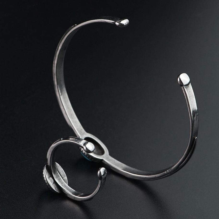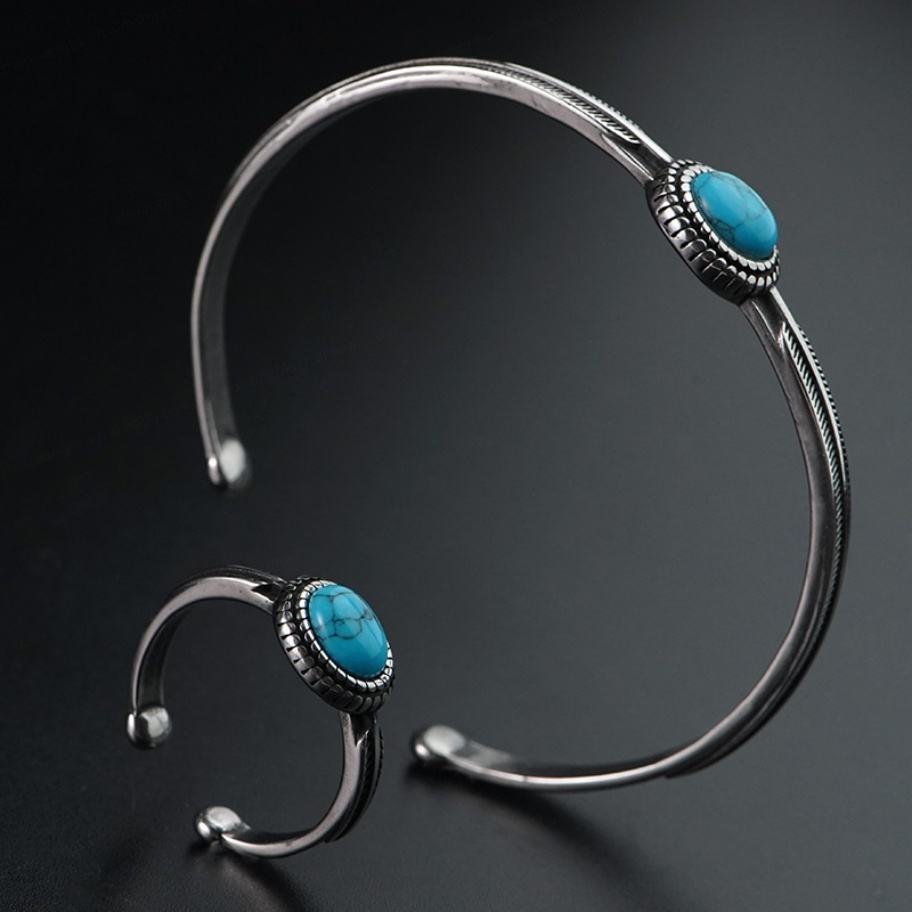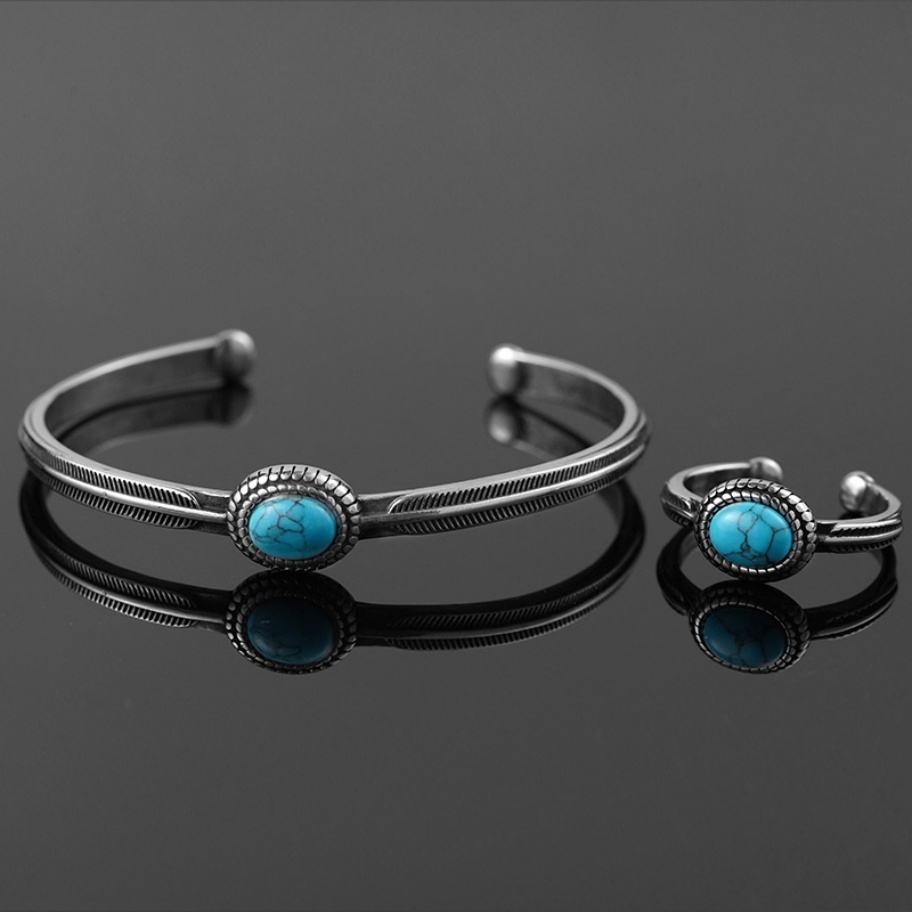 ชุดเครื่องประดับสไตล์วินเทจยุโรปอเมริกันตะวันตก กำไลข้อมือและแหวนสแตนเลสชุบทองประดับเทอร์ควอยซ์และมุก ดีไซน์ไม่ซ้ำใคร