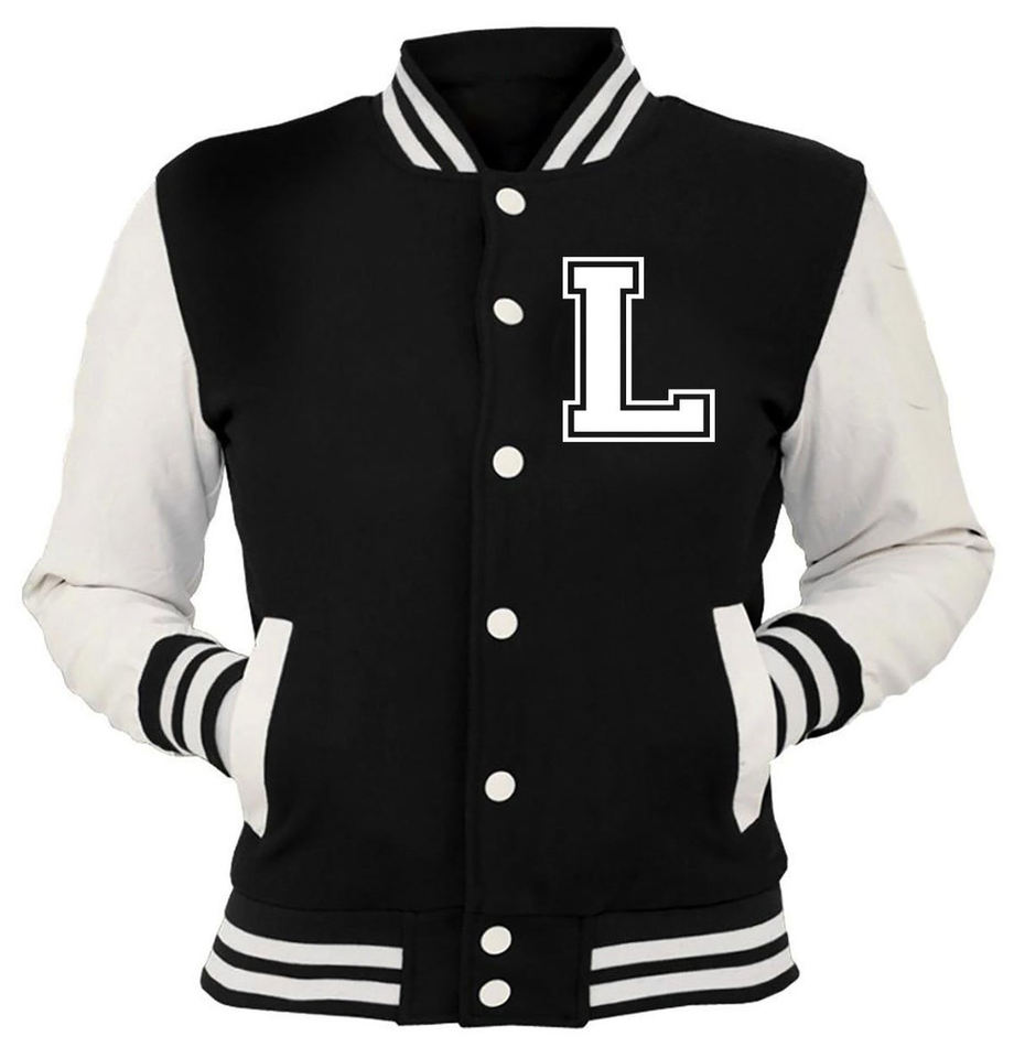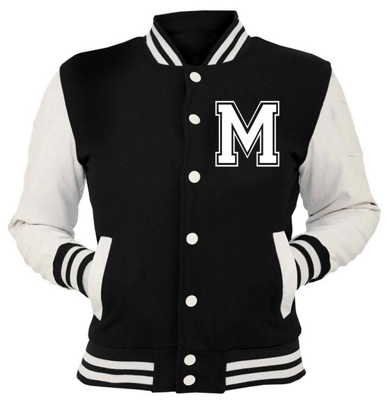 แจ็คเก็ตวาร์ซิตี้ผู้ชายแบบมีฮู้ด ป้องกันลม แขนหนังคุณภาพสูง งานวินเทจสั่งทำพิเศษ พร้อมงานปักตัวอักษร B