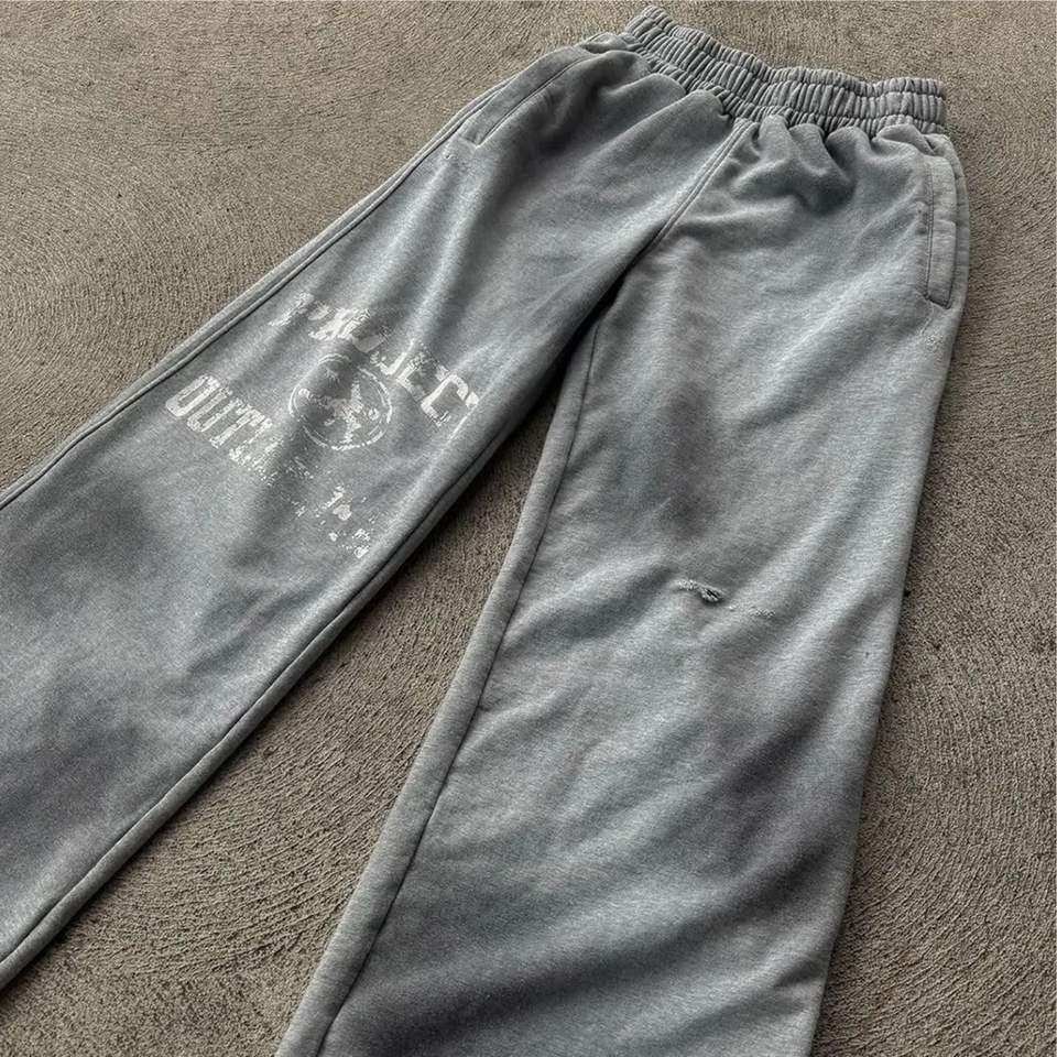กางเกงวอร์มขาตรงพิมพ์ลาย Dtg ผ้าฝ้าย100% กราฟิกรุ่นเฮฟวี่เวทสไตล์วินเทจตามสั่ง