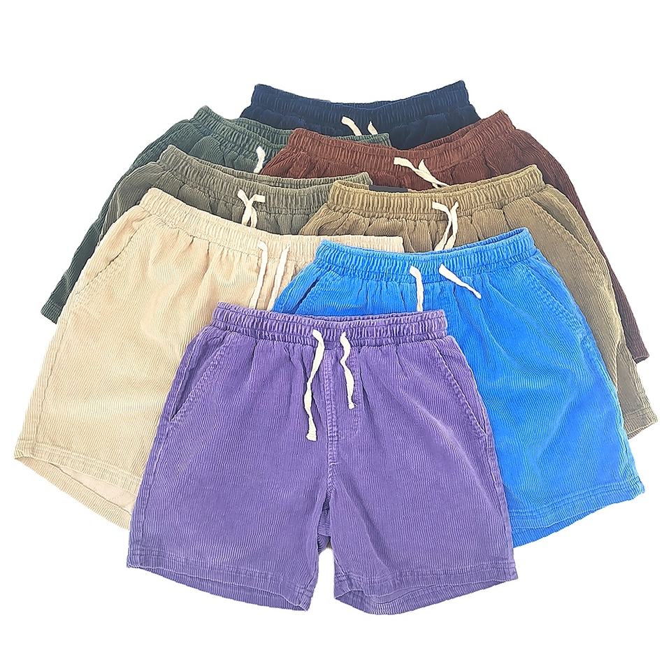 กางเกงขาสั้นผ้าลูกฟูกเอวสูงวินเทจของผู้ชายกางเกงขาสั้นผ้าคอตตอนออร์แกนิกเป็นมิตรต่อสิ่งแวดล้อม