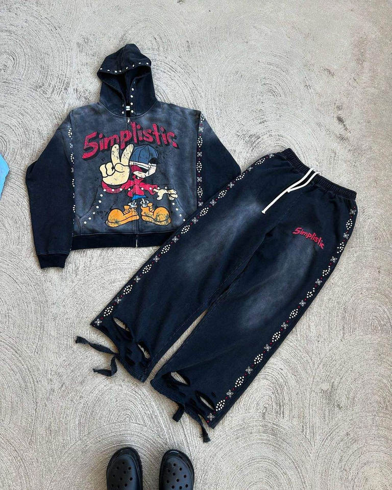 ชุดวอร์มวินเทจของผู้ชายผ้าคอตตอนผ้าฟลีซระบายอากาศได้ดีมีฮู้ดลาย DTG 100%