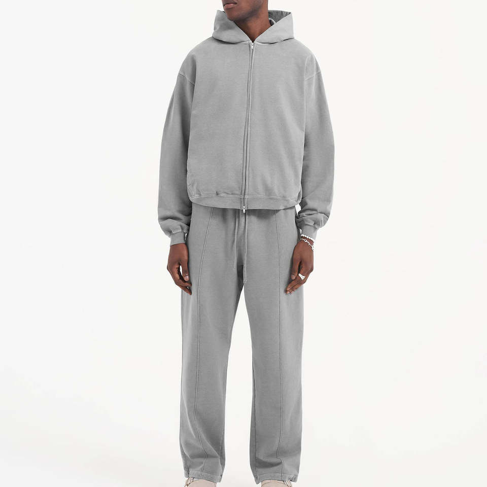 ชุดวิ่งจ๊อกกิ้งแนววินเทจแบบกำหนดเองชุดวอร์มกรดซักเหงื่อมีฮู้ดและขาตรงกางเกงวอร์มขาบานชุดวอร์มสำหรับผู้ชาย