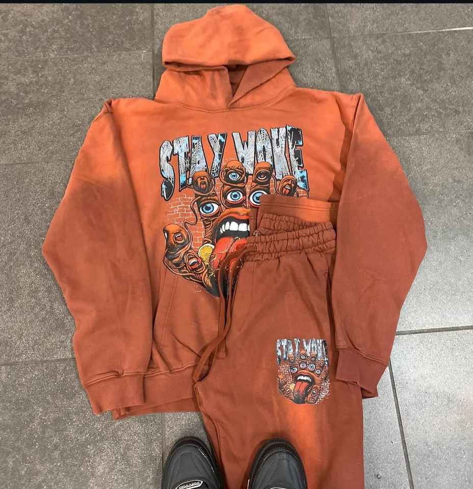 ชุดวิ่งจ๊อกกิ้งแนววินเทจแบบกำหนดเองชุดวอร์มกรดซักเหงื่อมีฮู้ดและขาตรงกางเกงวอร์มขาบานชุดวอร์มสำหรับผู้ชาย