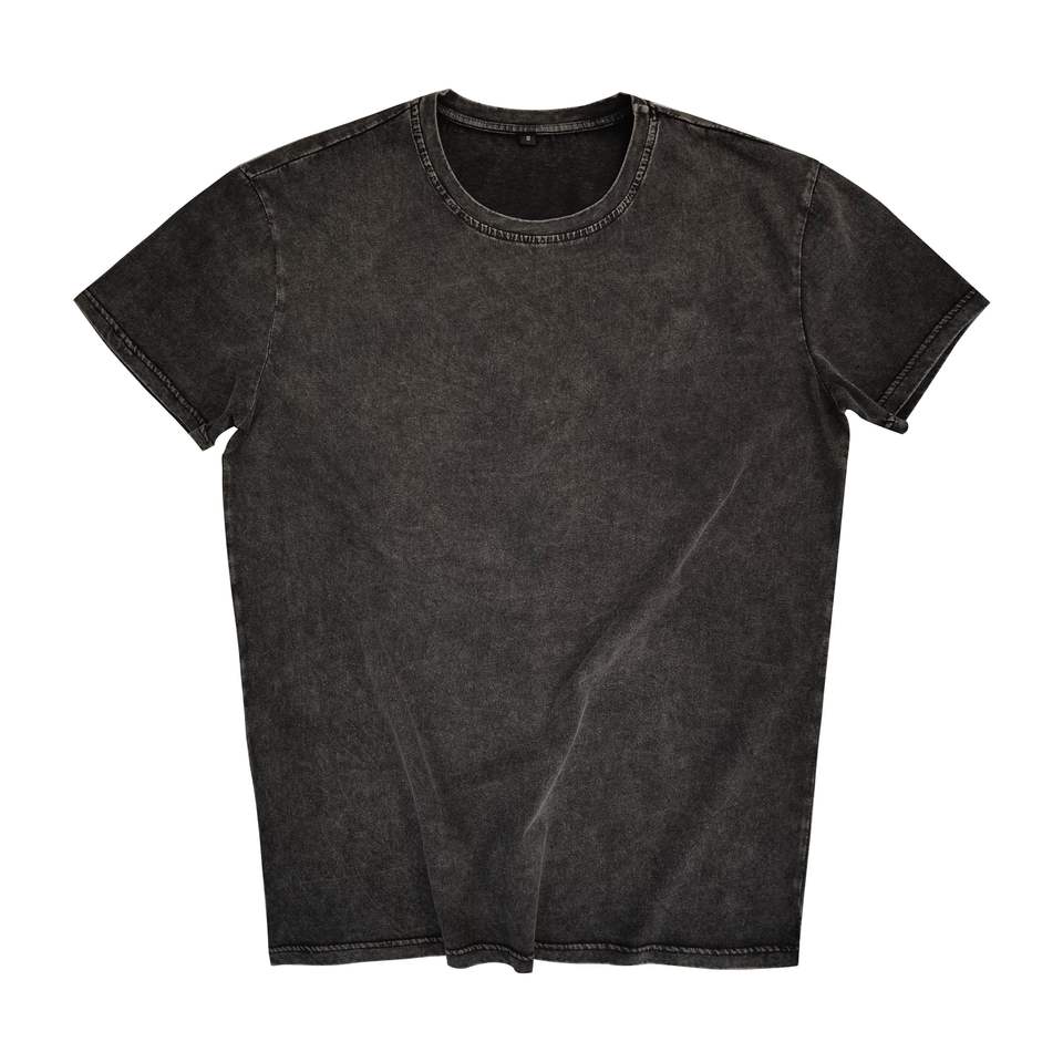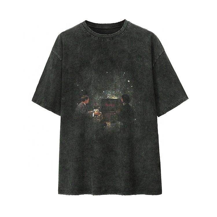 เสื้อยืดผู้ชายพิมพ์ลายโลโก้วินเทจผ้าถักลายกรดซีดจางเรียบๆสไตล์ลำลองดีไซน์พื้น