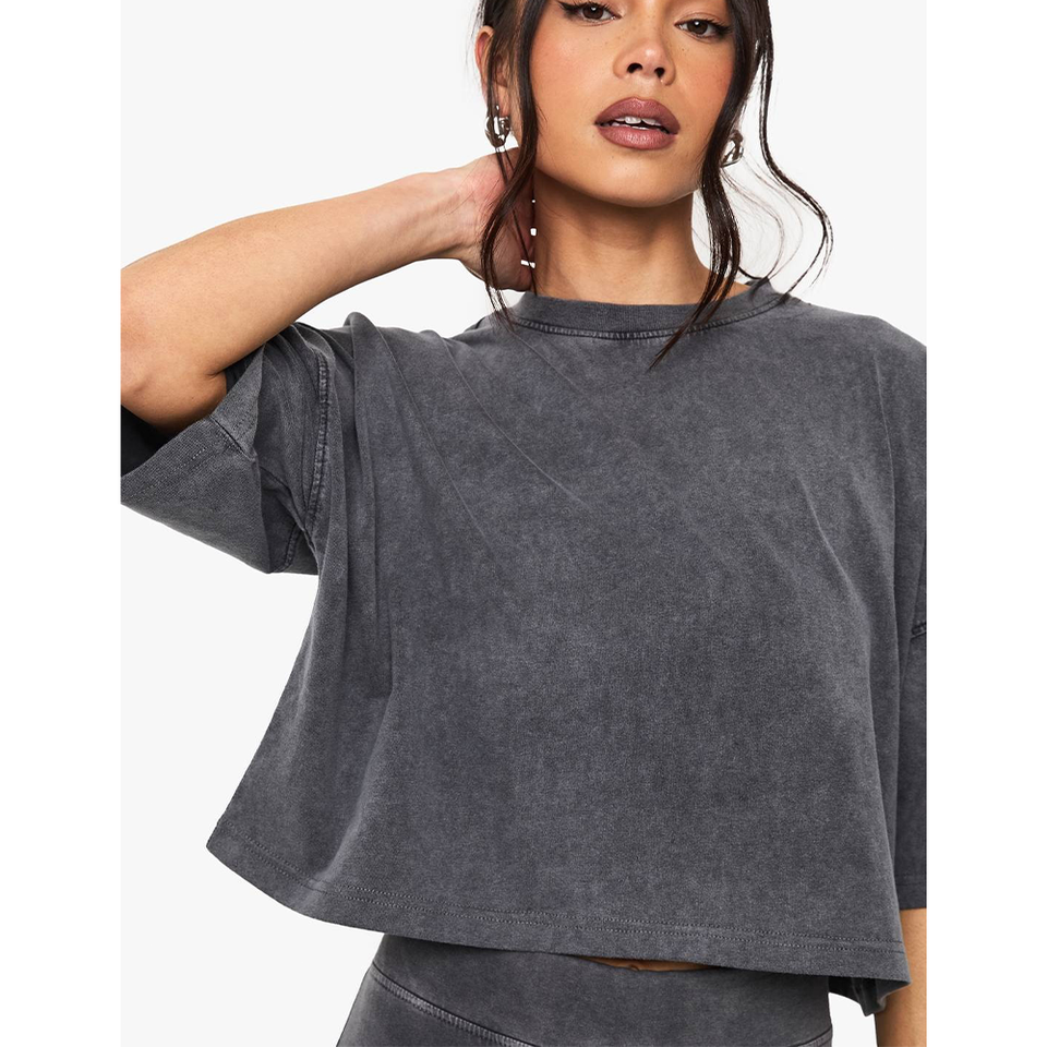 เสื้อยืดวินเทจทรงโอเวอร์ไซส์ ล้างสีแบบแอซิดวอช ปักลายนูน 3 มิติ ราคาโรงงาน ผ้าฝ้ายเฟรนช์เทอร์รี่ คอกลม เนื้อหนา เสื้อเจอร์ซีย์ผู้หญิง