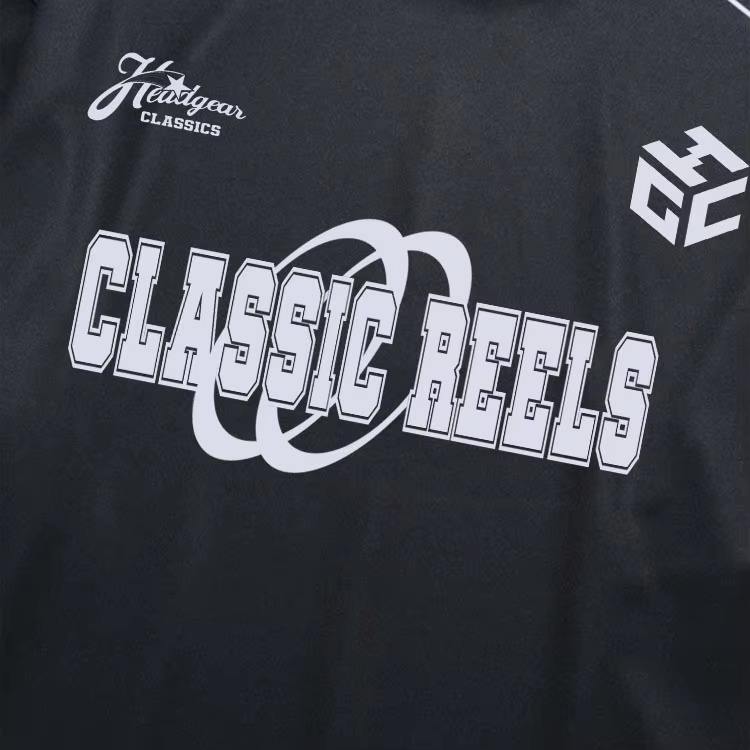 เสื้อรักบี้แบบมีกระดุม คอวี ระบายอากาศได้ดี ผลิตจากโพลีเอสเตอร์ 100% ปักลายวินเทจขนาดใหญ่พิเศษ แบบซับลิเมชั่น