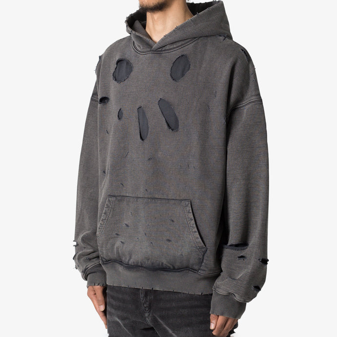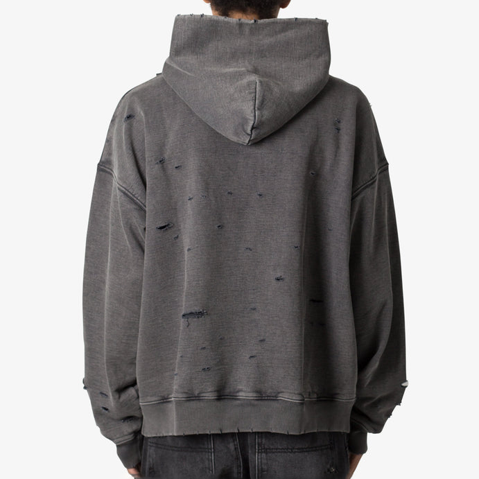 เสื้อฮู้ดดี้ผู้ชายสไตล์วินเทจทรงโอเวอร์ไซส์ สตรีทแวร์ ล้างสีแบบแอซิดวอช ซีดจางแบบซันเฟด ขาดๆ แบบดิสเทรส ปักลาย สำหรับฤดูหนาว ผ้าฝ้ายฟลีซ 100%