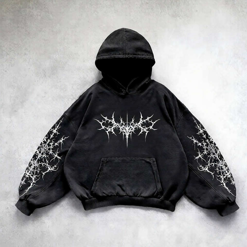 เสื้อฮู้ดดี้โอเวอร์ไซส์สไตล์วินเทจแบบสั่งทำพิเศษ ลายพิมพ์ดิจิทัล ล้างสีแบบแอซิดวอช ดีไซน์ทำเก่า น้ำหนัก 500 กรัม สำหรับผู้ชาย
