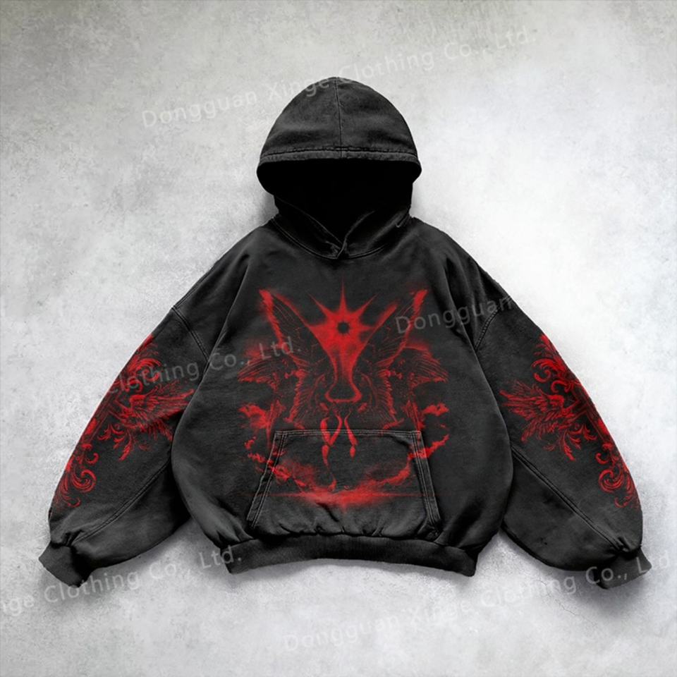 เสื้อฮู้ดดี้โอเวอร์ไซส์สไตล์วินเทจแบบสั่งทำพิเศษ ลายพิมพ์ดิจิทัล ล้างสีแบบแอซิดวอช ดีไซน์ทำเก่า น้ำหนัก 500 กรัม สำหรับผู้ชาย