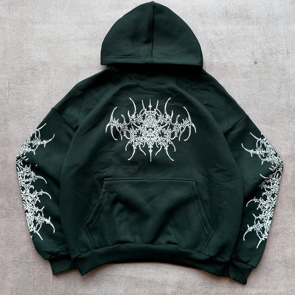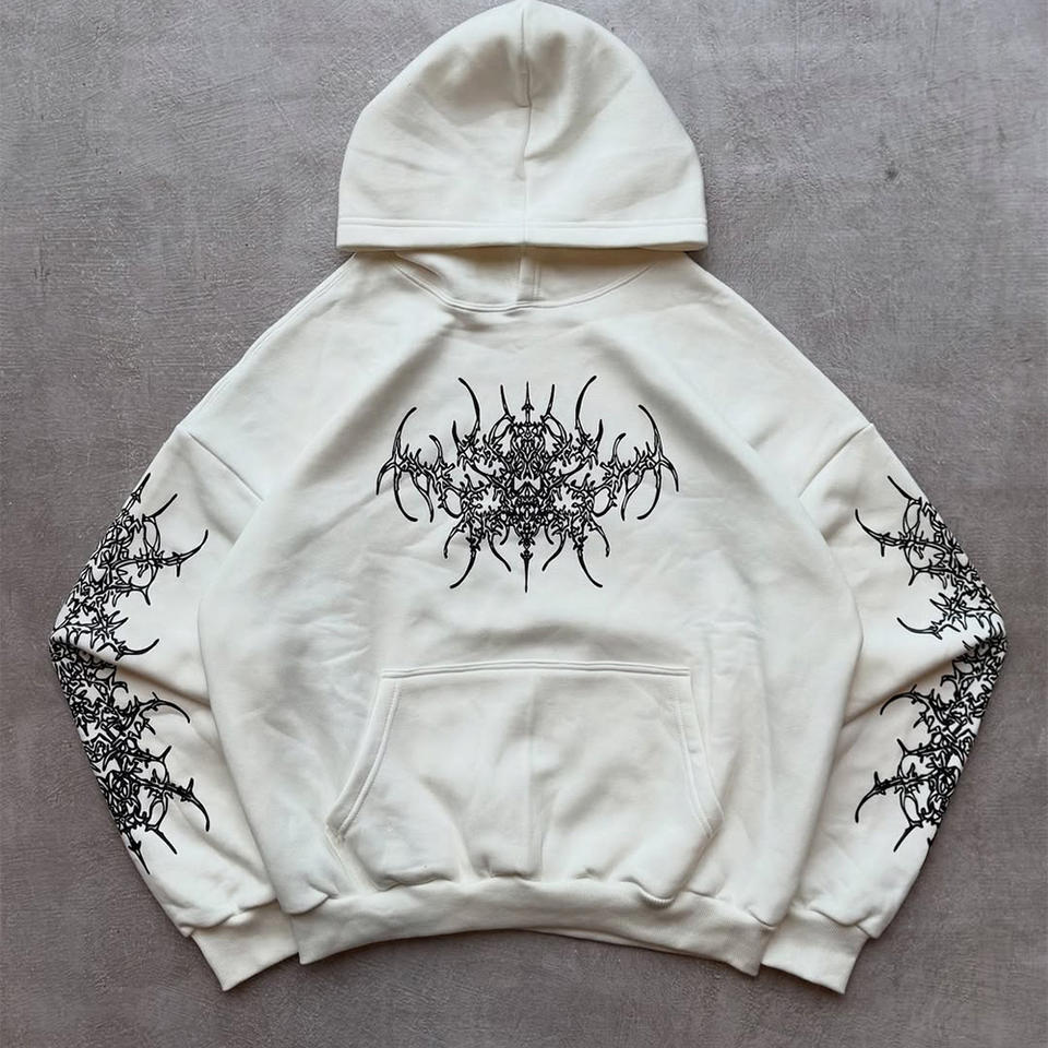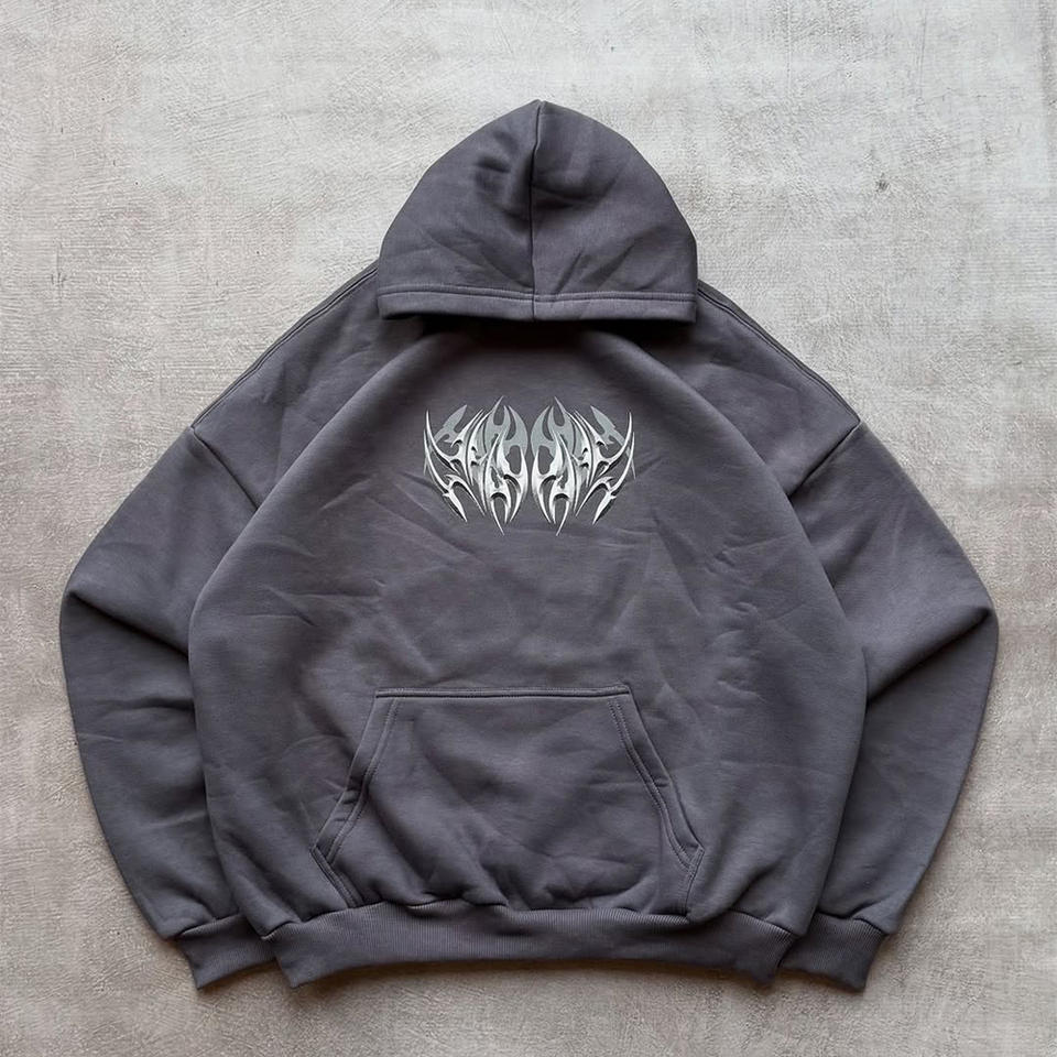 เสื้อฮู้ดดี้วินเทจทรงโอเวอร์ไซส์แบบยูนิเซ็กซ์ พิมพ์ลายดิจิทัล สไตล์ฟอกสีแบบแอซิดวอช ลุคดิสเทรส ผ้าหนา สำหรับฤดูใบไม้ร่วง