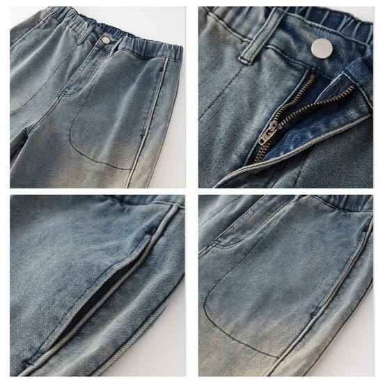 กางเกงยีนส์ฮิปฮอปย้อนยุควินเทจแบบกำหนดเองสำหรับผู้ชายขากว้างพร้อมกระดุมตกแต่งระบายอากาศได้สำหรับทุกฤดูกาล