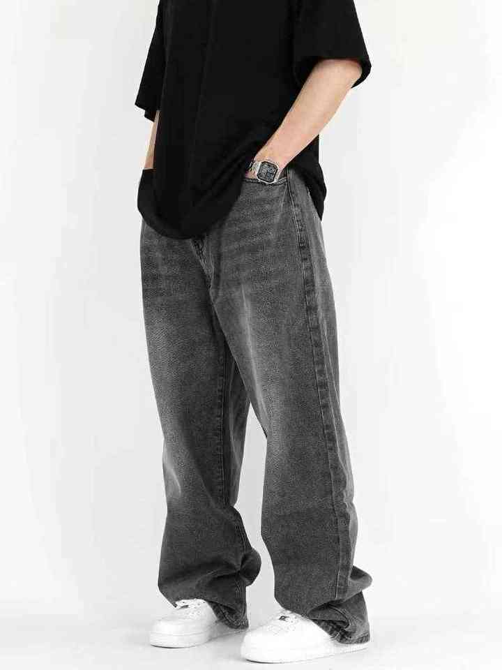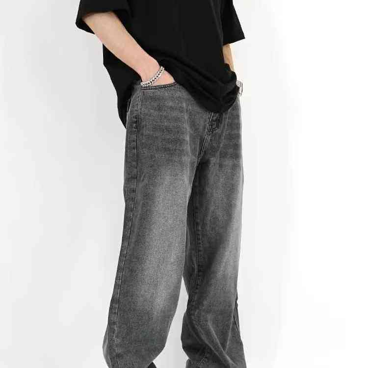 กางเกงยีนส์ผู้ชายทรงตรงเอวกลางสไตล์วินเทจ ผ้าฝ้าย 100% ทรงคลาสสิก กันน้ำ ปักลาย เป็นมิตรกับสิ่งแวดล้อม เหมาะสำหรับใส่ทำงาน