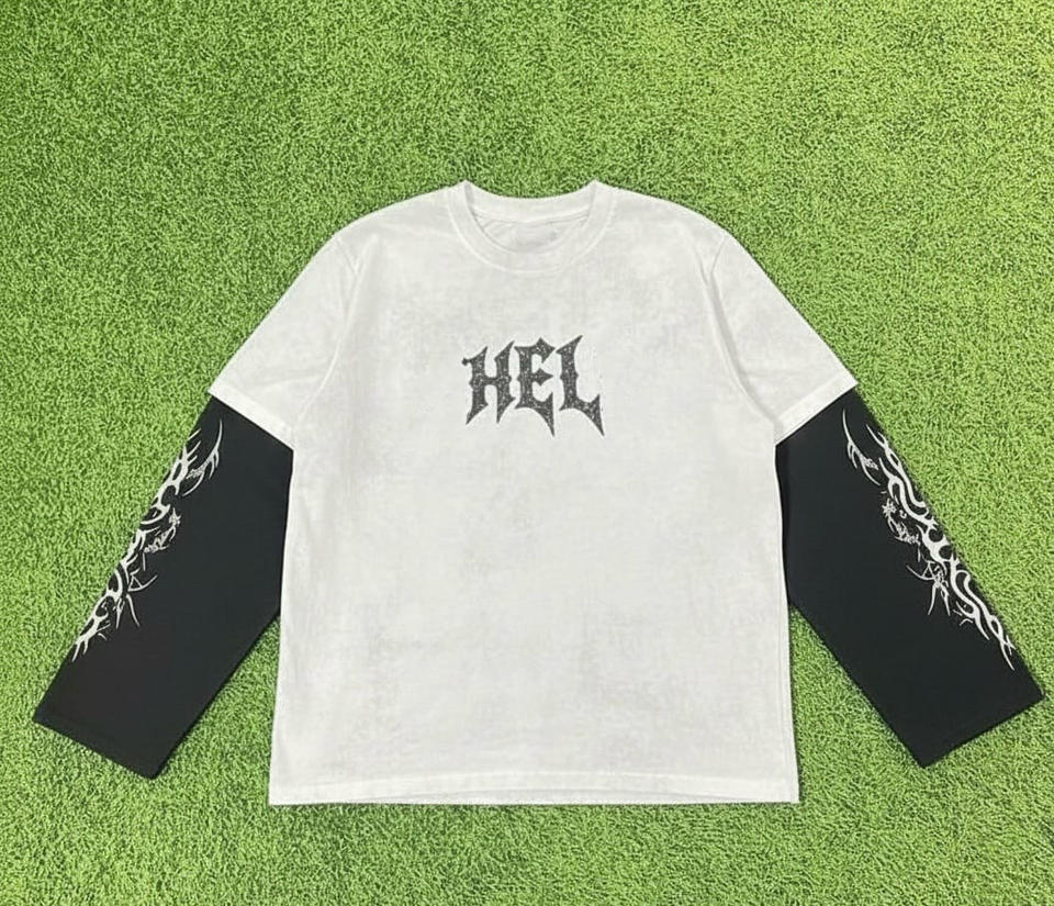 เสื้อยืดสตรีทแวร์ทรงโอเวอร์ไซส์ แขนยาว พิมพ์ลายสองชั้นแบบวินเทจ ซักแบบซันเฟด น้ำหนัก 280 กรัม ทรงบ็อกซี่