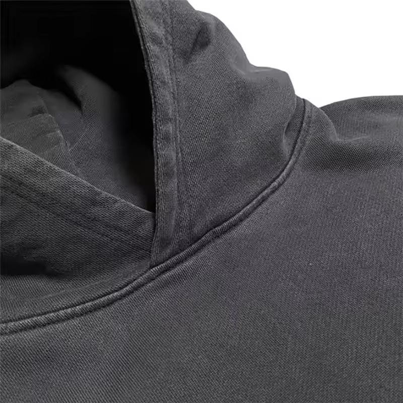 เสื้อสเวตเตอร์โอเวอร์ไซส์สำหรับผู้ชายเสื้อมีฮู้ดลายเรียบบ็อกซี่เสื้อมีฮู้ดลำ100% สไตล์วินเทจตามสั่ง