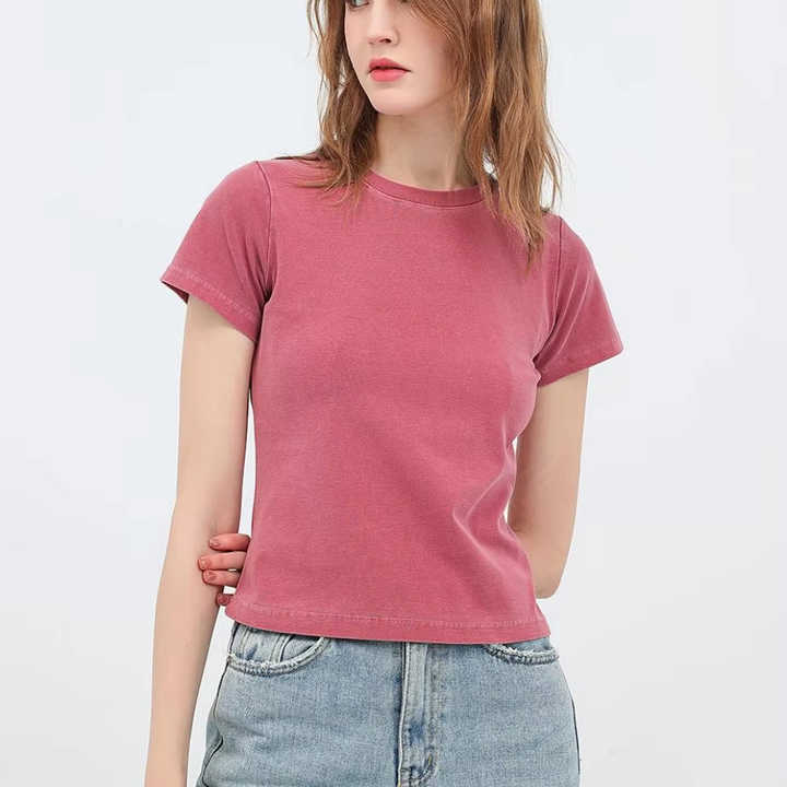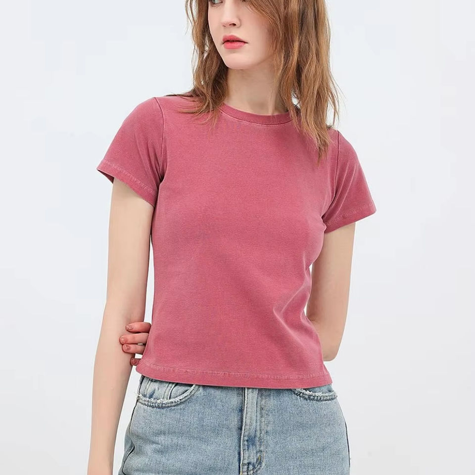 เสื้อยืดแขนสั้นทรงสลิมฟิตสำหรับสาวเผ็ดเสื้อยืด240gsm แขนสั้นสไตล์วินเทจซักได้ตามต้องการ