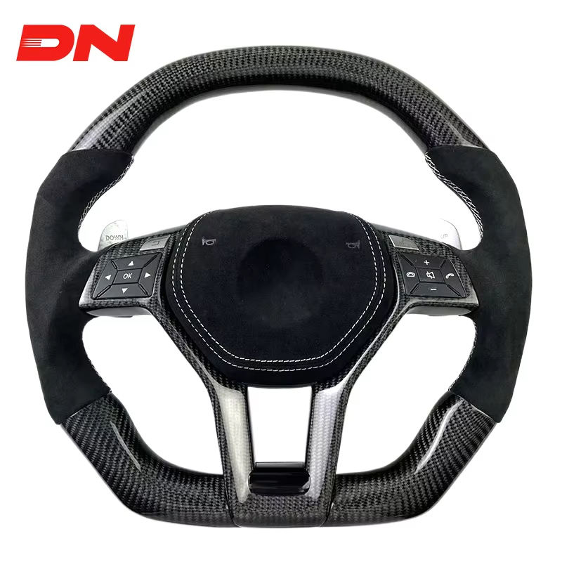 Volante พวงมาลัยหนังคาร์บอนไฟเบอร์สีดำมันวาวแบบกำหนดเองสำหรับ Mercedes Benz W204 W205 W207 W211 W221 AMG GT CLS รุ่น
