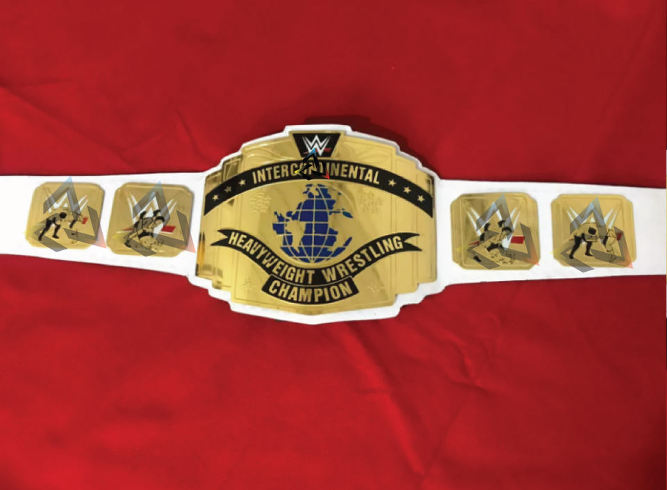เข็มขัดแชมป์อินเตอร์คอนติเนนตัล W-W-E แบบกำหนดเอง ขนาดผู้ใหญ่ ทำจากทองเหลืองหนา 2 มม. - แผ่นโลหะชุบทองและสายหนัง