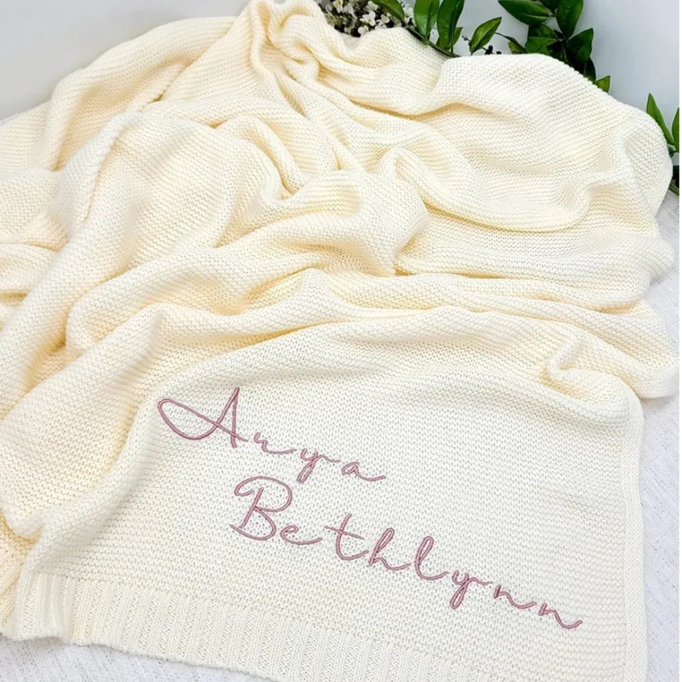 ผ้าห่มเด็กผ้าแคชเมียร์ถักแบบกำหนดเองชื่อชื่อผ้าฝ้ายนุ่มผ้าห่มอาบน้ำสำหรับเด็ก