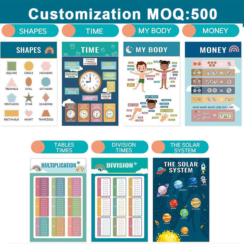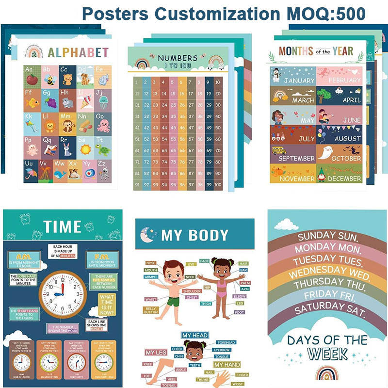 พิมพ์โปสเตอร์ติดผนังแบบกำหนดเอง แผนภูมิตัวอักษร สำหรับห้องเรียน เด็กๆ วัสดุการเรียนรู้ภาษาอังกฤษ อุปกรณ์การเรียนรู้ ของเล่นเสริมพัฒนาการเด็กเล็ก
