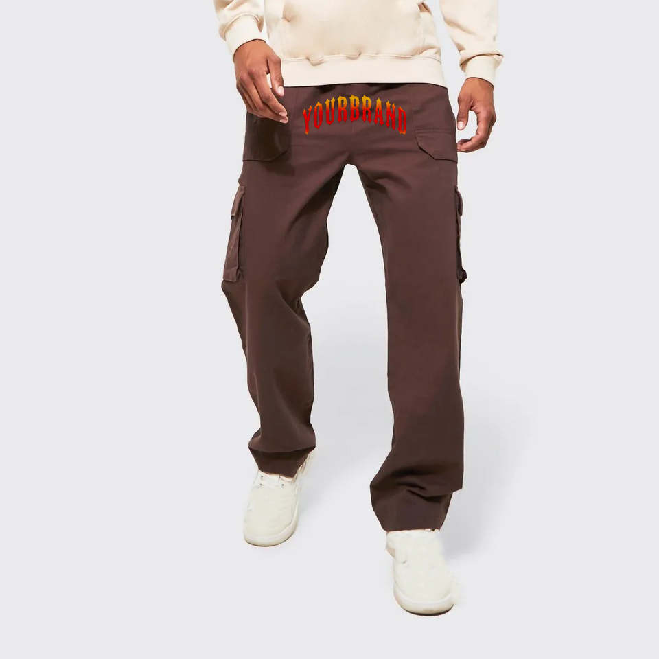 Custom Washed Men's Casual Trousers Winter/Autumn Baggy Cargo Pockets Streetwear Boxy Fit Embroidery Canvas sweatpants