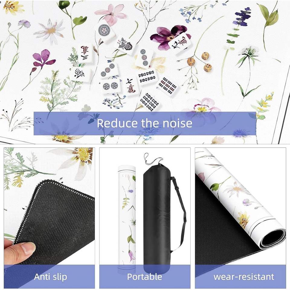 ผ้าคลุมโต๊ะไพ่นกกระจอกกันลื่น ลดเสียงรบกวน ลายดอกไม้สีน้ำ พร้อมกระเป๋าหิ้ว สำหรับเล่นโป๊กเกอร์และพนัน ผลิตในจีน