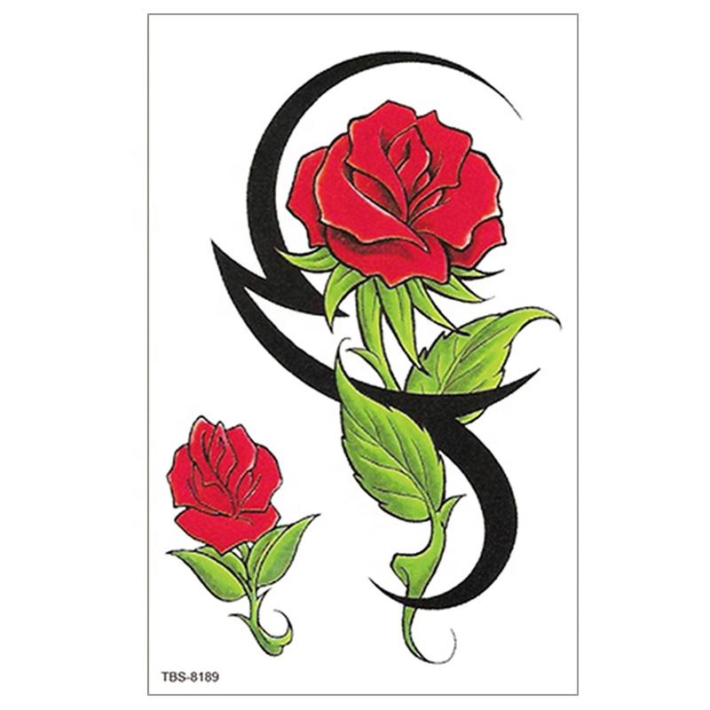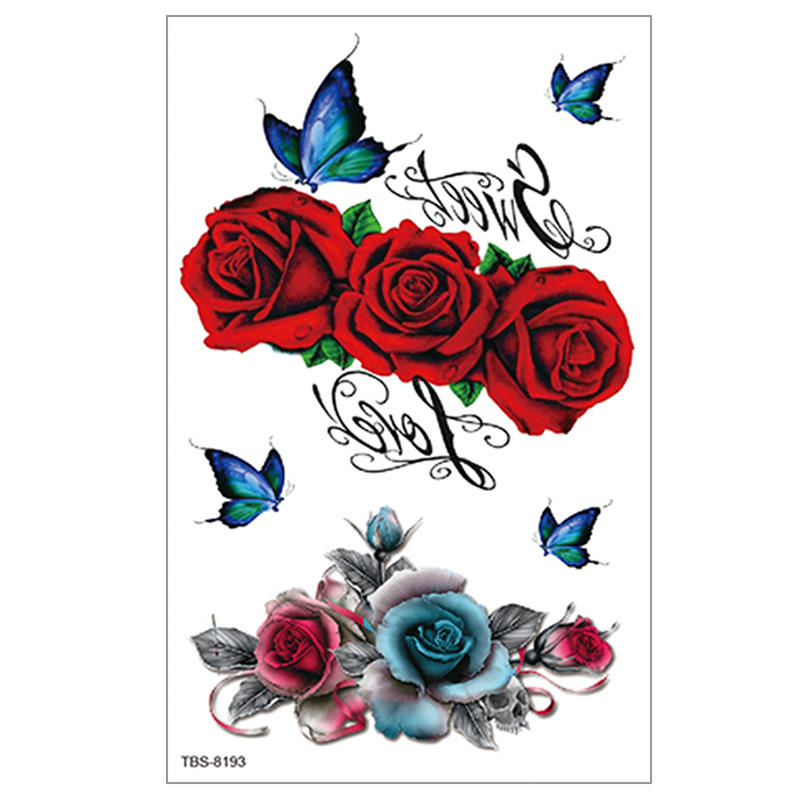 สติกเกอร์ลายดอกไม้ชั่วคราวแบบสีน้ำลายกุหลาบและลิลลี่สำหรับผู้หญิง กันน้ำ ติดได้ที่หน้าอก เอว ลายดอกไม้ 3 มิติ แบบกระดาษ TBS