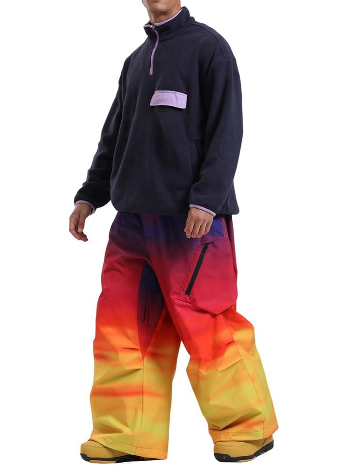 กางเกงกันหิมะระบายอากาศน้ำหนักเบาสีรุ้งสำหรับทุกเพศกางเกงสโนว์บอร์ดคาร์โก้ทรงหลวมขนาดใหญ่ออกแบบได้ตามต้องการ
