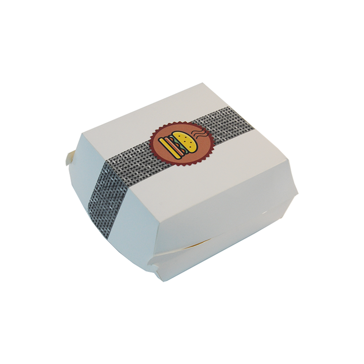 กล่องบรรจุภัณฑ์อาหารแบบใช้แล้วทิ้งกันน้ำสำหรับเบอร์เกอร์และแฮมเบอร์เกอร์ ทำจากกระดาษแข็งเกรดอาหาร พร้อมพิมพ์โลโก้ตามสั่ง