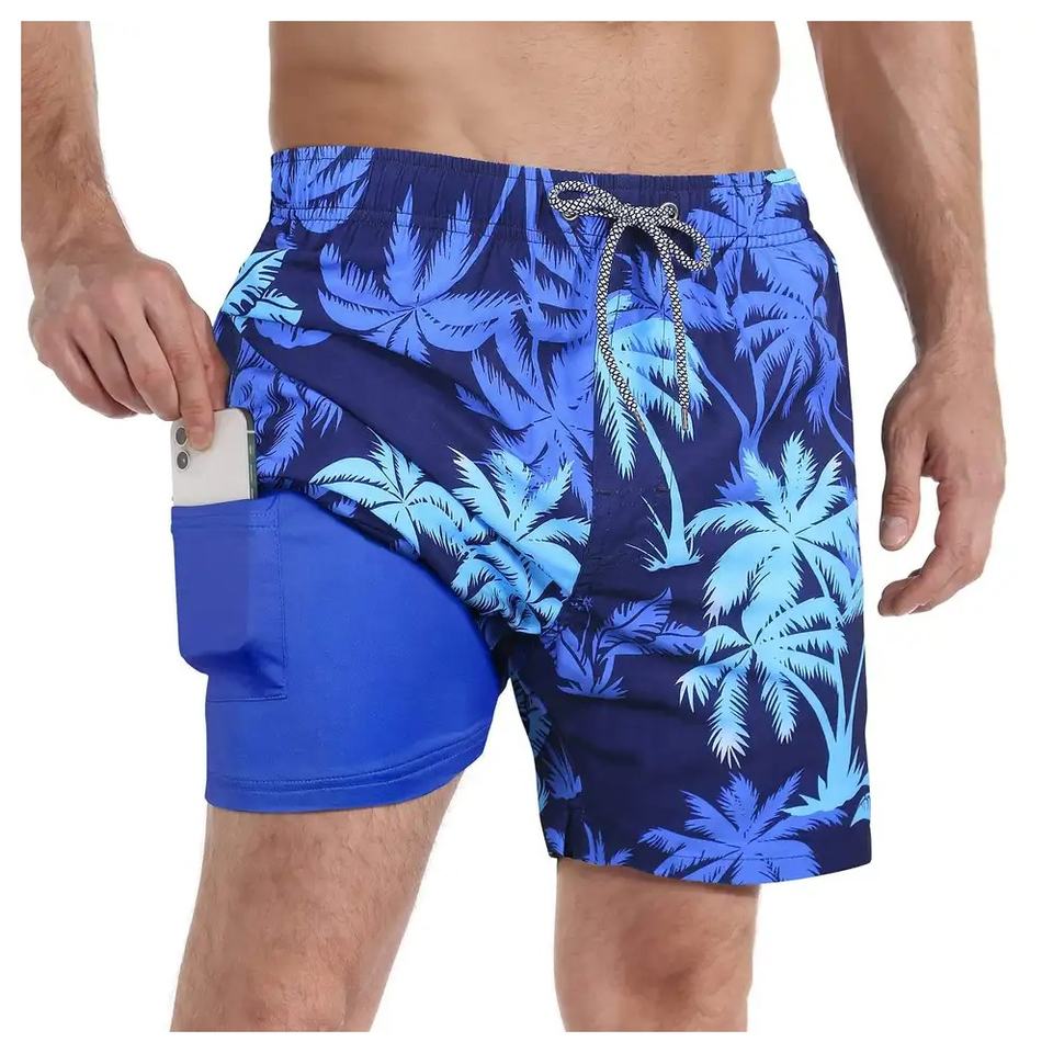 กางเกงว่ายน้ำชายหาดผู้ชายระบายอากาศได้กางเกงขาสั้นใส่สบายมีกระเป๋าสำหรับใส่ว่ายน้ำสไตล์เกาะกันน้ำออกแบบได้ตามต้องการ
