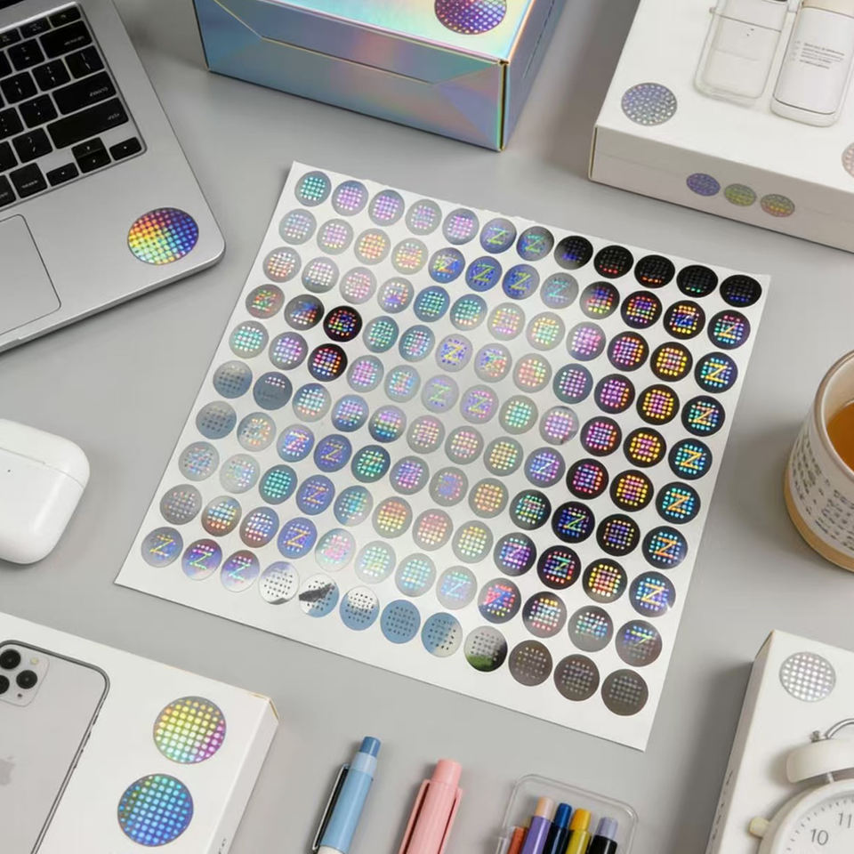 สติกเกอร์โฮโลแกรม PET กันน้ำแบบกำหนดเอง สติกเกอร์วงกลมเลเซอร์สีรุ้ง สำหรับตกแต่ง DIY