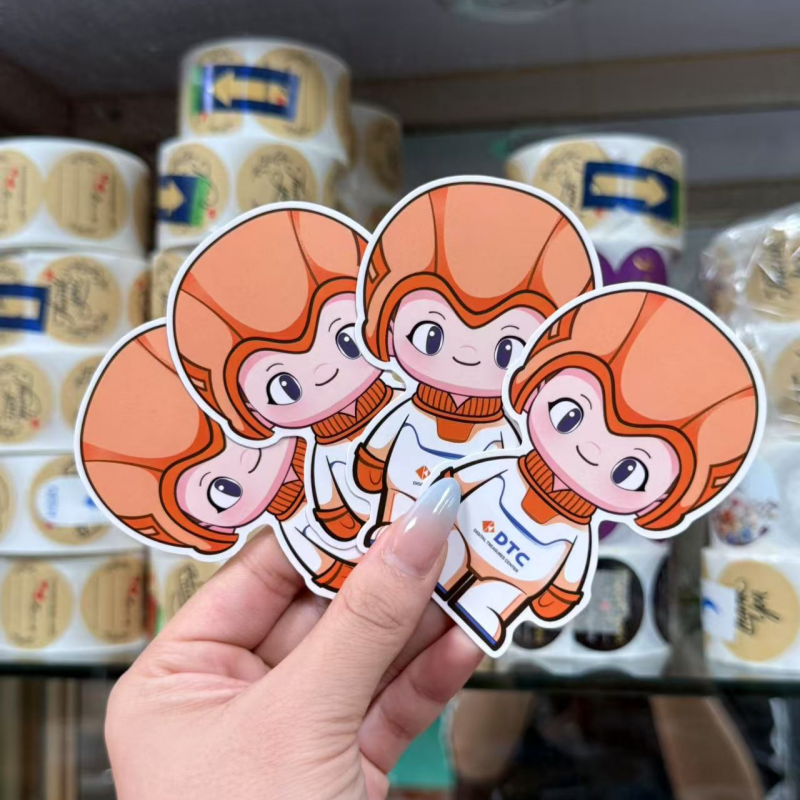 สติกเกอร์การ์ตูน PET แบบกำหนดเอง ตัดตามรูป โลโก้ กันน้ำ พิมพ์ UV ฉลากกาวในตัว ติดแน่น ใช้สำหรับงานเทียนและงานฝีมือ