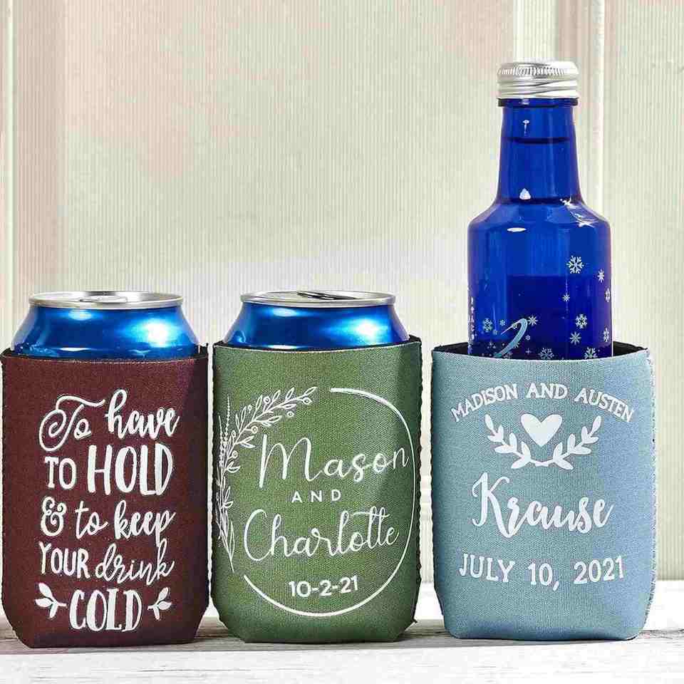 กระติกน้ำเก็บความเย็นงานแต่งงานแบบพรีเมียมสั่งทำพิเศษ พร้อมปักชื่อย่อ วัสดุทำจากนีโอพรีน ดีไซน์ทันสมัย ใช้ได้หลากหลาย เหมาะสำหรับเป็นของชำร่วยส่งเสริมการขาย