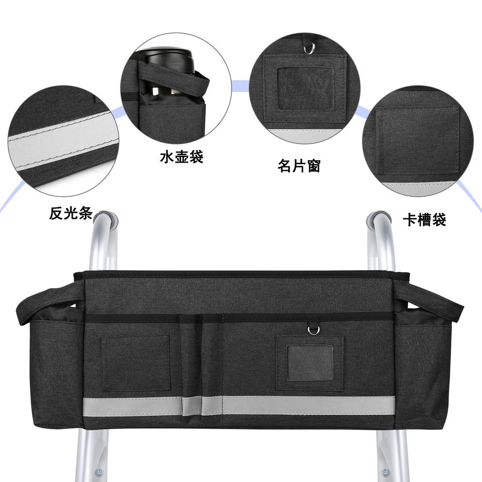 กระเป๋าเก็บของสำหรับรถเข็นที่วางแขนกระเป๋าข้างสำหรับรถเข็นมีแถบสะท้อนแสงกระเป๋าเก็บของกันน้ำสำหรับรถเข็นทุกประเภท