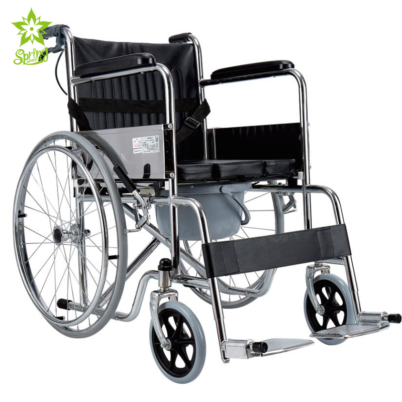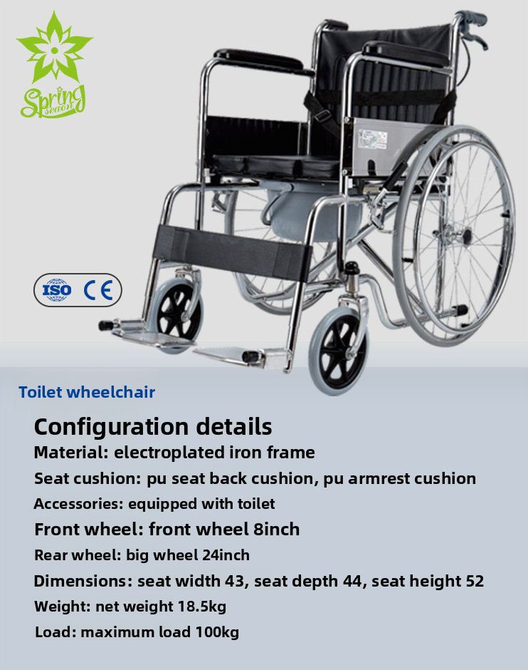 รถเข็นสำหรับห้องน้ำแบบปรับได้เอง โครงเหล็กชุบเคลือบด้วยไฟฟ้า เบาะนั่ง PU พร้อมพนักพิง รับน้ำหนักได้ 100 กก. ทนทาน ใช้ได้ทุกวัน Springseaon