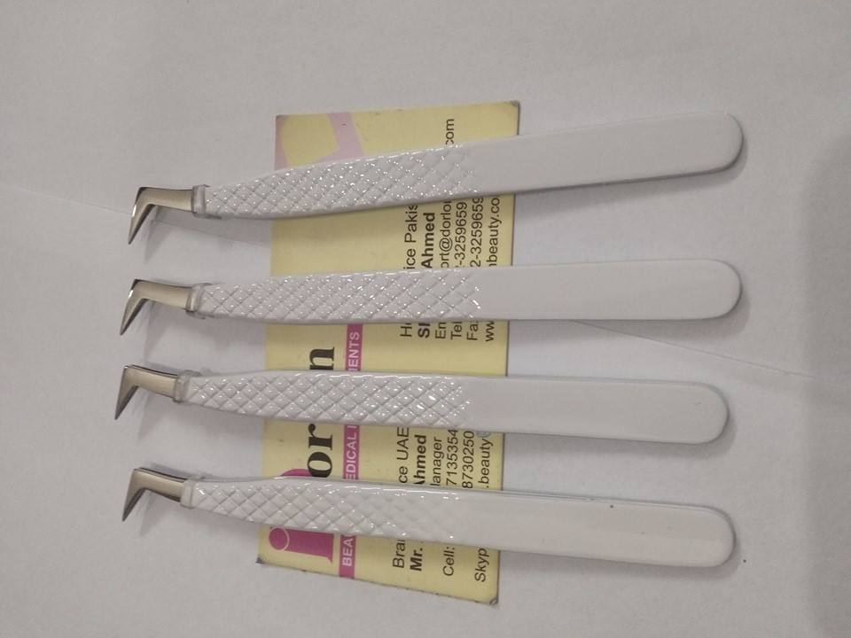 แหนบติดขนตาสีขาวแบบกำหนดเอง 90 องศา ผลิตจากเหล็กกล้าไร้สนิมญี่ปุ่น ด้ามจับแบบเพชร แหนบติดขนตาสำหรับแบรนด์ส่วนตัว