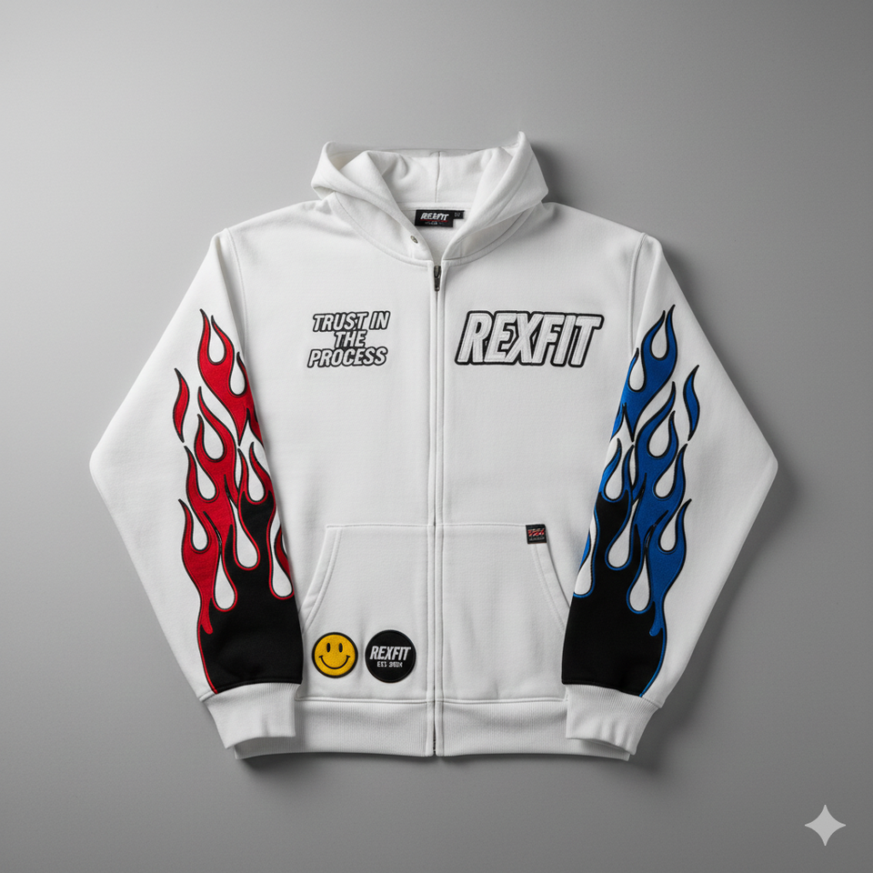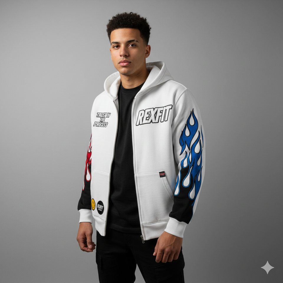 เสื้อฮู้ดซิปสีขาวแบบกำหนดเอง | เสื้อฮู้ดผ้าฟลีซพิมพ์ลายหน้าอก | แฟชั่นยอดนิยม เสื้อผ้าสตรีทแวร์ ชุดฤดูหนาว ขายส่ง